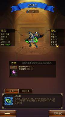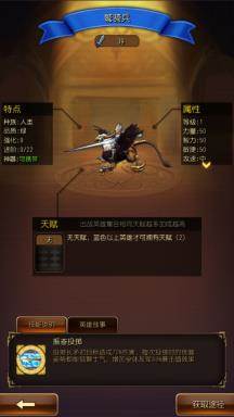 Ø 分析:全团暴击加成是鹫骑兵的看家本领,初期英雄暴击率一般较低,在鹫骑兵的加成之下,1.5倍伤害的效果不可小觑。其本身的单体攻击也是相当强劲,是热衷于强攻的玩家必选英雄之一