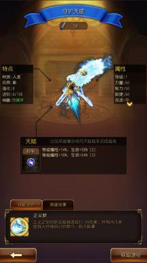 Ø 分析:守护天使外形炫酷,是玩家较为青睐的英雄之一,但这不是选择理由。真正吸引玩家的是其超高生命的天赋隐藏属性,以及能够使敌人眩晕的技能—正义斩。控制类技能在实战中收效极高,配合上高输出友军,能够使敌人毫无还手之力