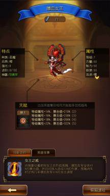 Ø 分析:或许暴击天赋的英雄在中期选择较多,充其量只是嗜血女王的点缀。真正值得推荐的,是她那强大的团队辅助能力。为友军提供48%的暴击值和40%攻击速度,使得本身就十分强力的友军如虎添翼。橙色的品质更使得嗜血女王在中期到后期都具有非常高的培养价值