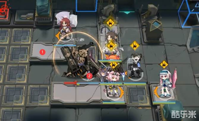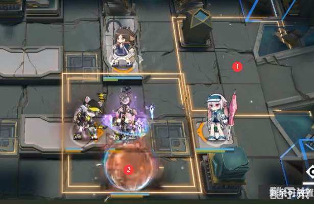 炮车开动后,如图所示位置部署工具人阻挡吃火箭炮,正面再下一个重装。