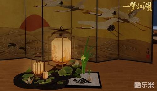 豆蔻初发,菖蒲晚开。弟子们将这两种不同时节的草木融汇于同一家具景致中,制造成了一盏新灯。