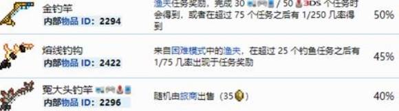 +45%渔力,可以在熔岩中钓鱼,且只能在困难模式的渔夫中,完成25个钓鱼任务后1/75几率出现于任务奖励。