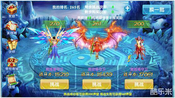 点击天梯竞技,选择挑战对象,挑战成功会获得声望的奖励并且排名提升,挑战失败,则只能获得部分的声望奖励并且排名不变。