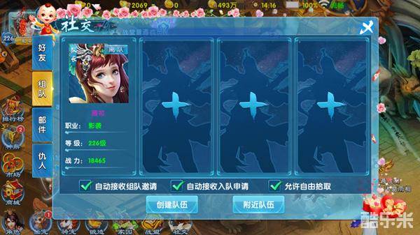 玩家在游戏过程很多时候需要组队才能完成任务和击杀怪物,在组队界面,玩家可以创建队伍,设置自动接收入队请求和掉落分配。