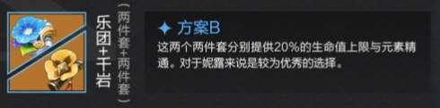这两个两件套分别提供20%的生命值上限与元素精通。对于妮露来说是较为优秀的选择。