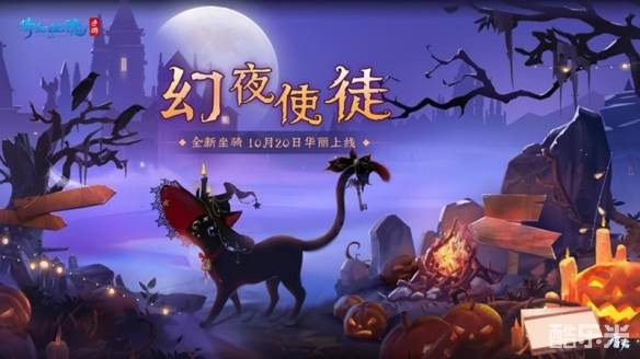 全新坐骑【幻夜使徒】奇妙来袭!一只颈间系着红色蝴蝶结和金色锁链的异瞳黑猫降临三界。修长且毛茸茸的尾巴上还悬挂着精致的红色桃心钥匙,可爱至极。黑红配色的礼帽上点缀着流星花纹和温暖烛火,与【绯夜华章】时装相映成趣。快乘上这只【幻夜使徒】一起探索三界吧。