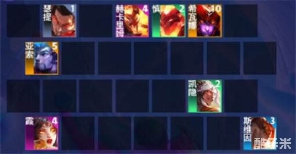 阵容搭配:霞、瑟提、凯隐、乌鸦、人马、龙女、亚索,主C是霞,副C龙女和亚索。