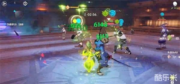 切换柯莱,EQ起手,让附着水元素的怪物发生绽放反应。之后换回心海,继续打一套。