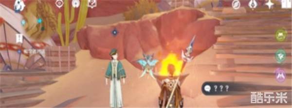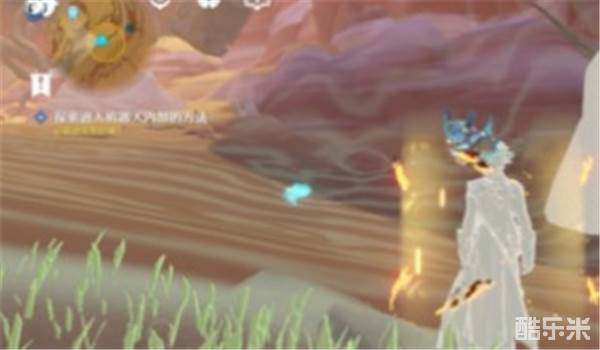 2、根据任务指引来到如下图所示的石壁前,开启元素视野,可以看到两个不一样的位置,释放技能把石头击碎;