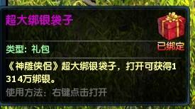 第三重大礼,预约即可活动13140000绑银,超大绑银袋子让你在游戏里“横”着走,用到手软,除此之外还有超酷炫翅膀背饰暗夜精灵,可爱时装童心未泯,以及闪亮称号“神雕小当家”。