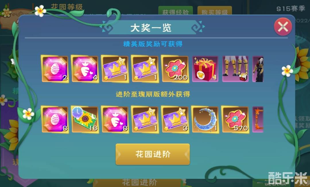 大家可以在花园任务界面查看到当周的经验值,将花园进阶至瑰丽版本,即可额外获得双份奖励。