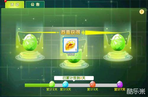 1.签到砸蛋:每日签到即可领取丰厚奖励,钻石、种子、皇冠等材料和资源均可获得。另外累计签到2天、3天、5天、7天等,除了当天可以砸蛋之外,达到对应天数即可获得额外砸蛋机会。每日签到可以说是获取钻石最简单粗暴的地方,各位小伙伴记得来领取喔。
