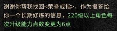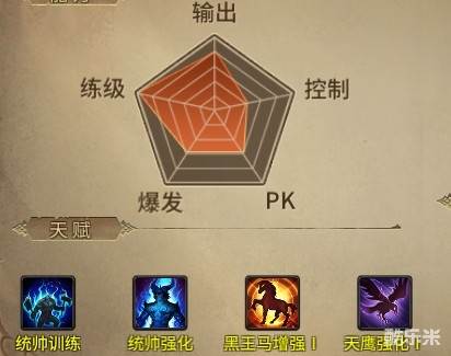 (2)天赋加点推荐:统圣路线推荐优先把大师点数加在正义这一栏内,该板块内的大部分天赋加成都和统率属性有关,直接增加或者百分比提高统率属性。天赋加到天鹰强化I时,统率属性的多少会按比例提高天鹰攻击力;当加到天鹰强化II时,天鹰的攻击力、防御力、生命值都按比例增加到角色当中去,天鹰和职业角色相互成长。
