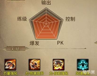 (2)天赋加点推荐:力圣路线需要优先把天赋点加到征服这一栏上,该板块内的绝大部分天赋都和力量、攻击、技能伤害相关,力量强化、力-伤害提升、蛮勇、风魂强化等天赋对角色力量提升很高,其中风魂强化最高能叠加100%的对怪伤害,还有百分比的PK伤害加成。