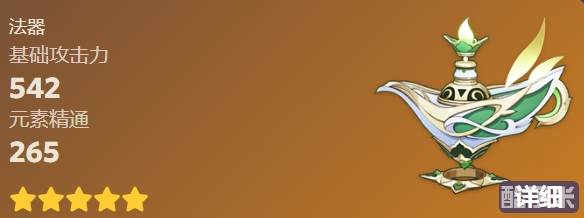 队伍中每个其他角色,都会依据元素类型与装备者相同与否,为装备者提供提升效果。相同:元素精通提升32点;不同:装备者元素类型的元素伤害加成提升10%。上述提升效果每种至多叠加3层。此外,队伍中装备者以外的附近角色的元素精通提升40点,多件同名武器产生的此效果可以叠加。