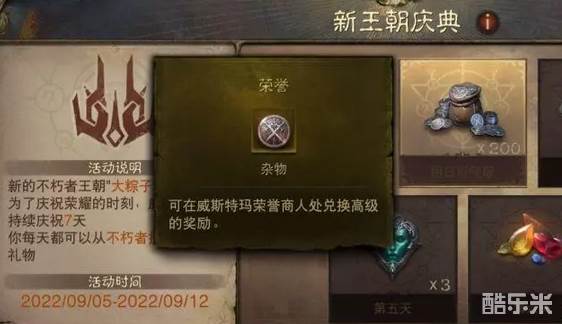 4、每周参与暗影会宝库可获取350荣誉,在宝库中每开一个箱子会有40荣誉加2万金币(每周上限40个箱子)。