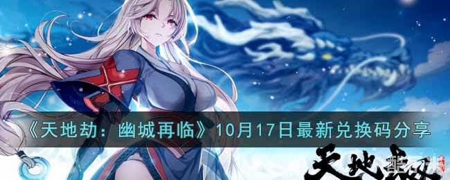 天地劫幽城再临10月17日最新兑换码有哪些?天地劫幽城再临10月17日最新兑换码是什么?天地劫幽城再临是一款奇幻武侠RPG手游,游戏官方会定期的发布兑换礼包,礼包中有不少好礼,很多小伙伴都想知道10月17日天地劫幽城再临最新兑换码,以下是小编带来的天地劫幽城再临10月17日最新兑换码分享,一起来看看吧。