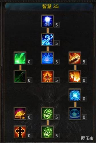 (2)天赋加点推荐:全智法推荐优先点天赋中“智慧”一栏,该板块中大部分天赋加成都与智力属性相关,百分比提高智力属性以及相关属性。在该栏中最下面的天赋——“幽魂熟练”叠加魔法师关键技能的伤害,最高可增加100%伤害。优先点出此天赋大大能提高伤害能力,堪称刷怪最强天赋!