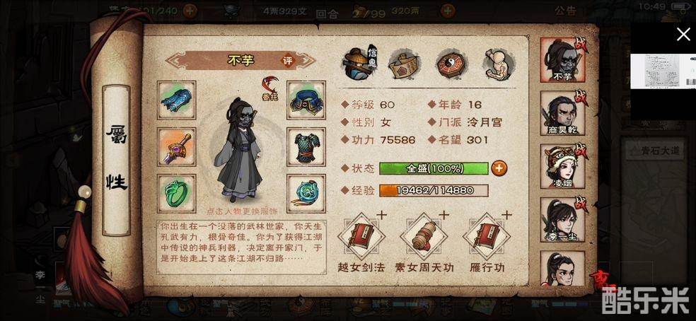 如果你想要秘籍还可以去拘魂武库,其中能够获得催心掌谱、黄泉剑谱、大星罗功、游龙身法、脉经灵枢、脉经素问、兵器论要、大阴阳手(唯一)、狂风剑谱(唯一)。今天烟雨江湖造化丹能增加多少阅历就介绍到这里了。