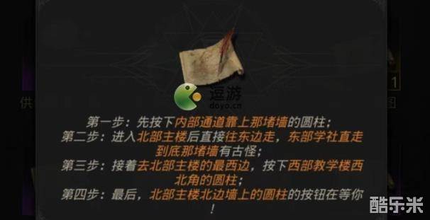 4、第四步:最后,北部主楼北边墙上的圆柱的按钮在等你