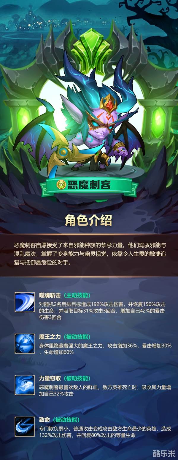 恶魔刺客自愿接受了来自邪恶种族的力量,他们驾驭邪能与混乱魔法,掌握了变身能力与幽灵视觉,依靠令人生畏的敏捷追猎与抵御最危险的对手~!