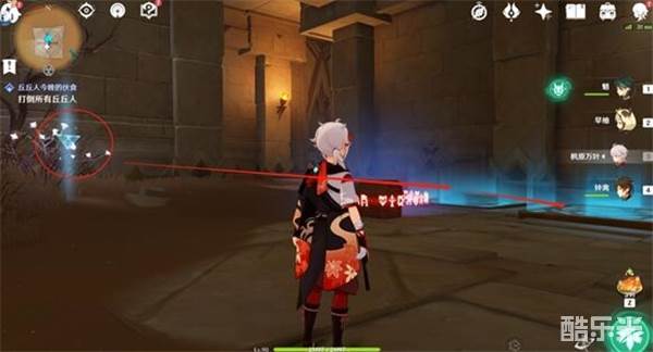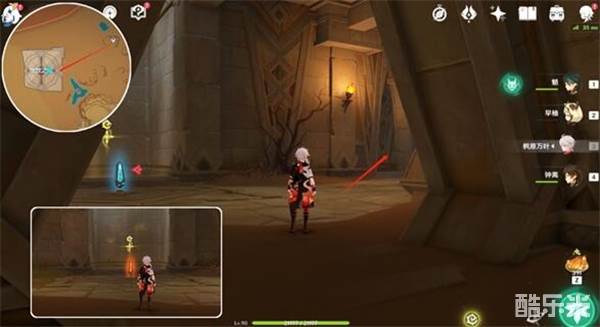1、首先我们从传送点过来,把大厅机关从红色调成蓝色,往右边走。