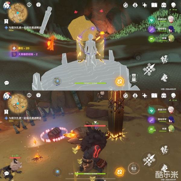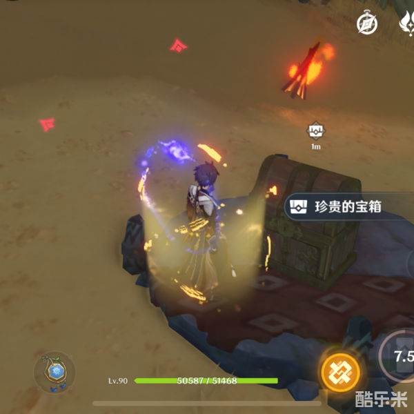 然后打开元素之眼,依旧是左右两边各一个石碓,先去右边拿宝箱。