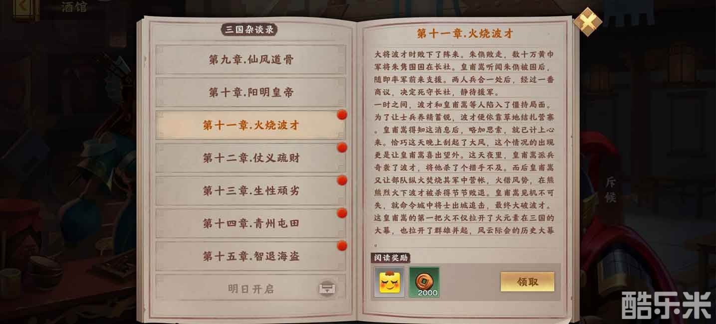 2.酒馆里面也能获得一些铜币,只要我们去说书人那里读下书,去玩玩翻翻乐小游戏就可以拿到了。