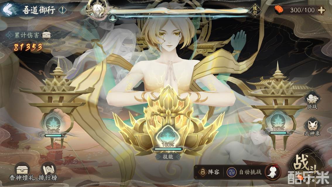 阴阳师可由活动主界面的「吾道御行」进入挑战活动BOSS持国天!