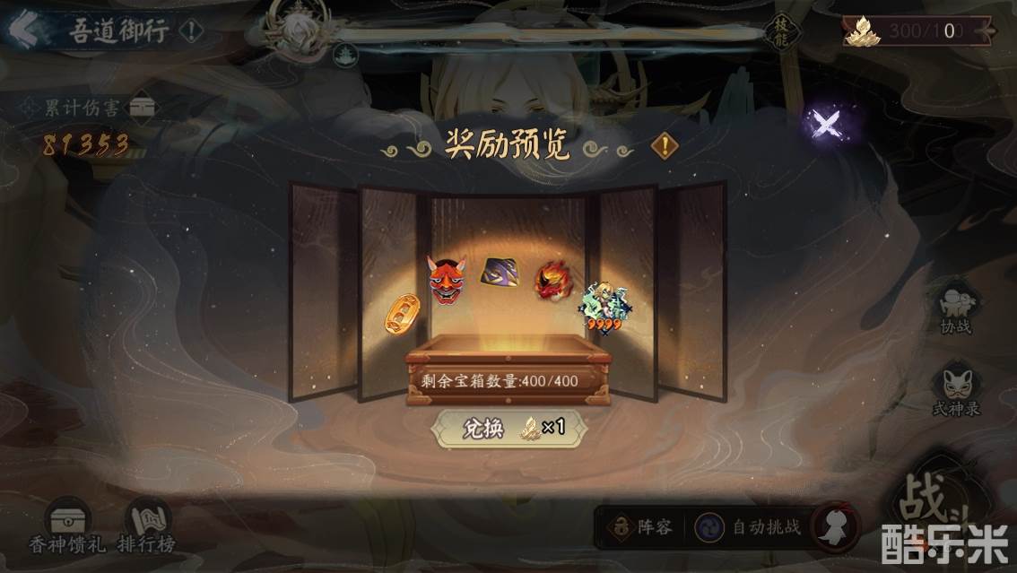 吾道御行的前40场挑战还可获得御神经验,请预先装配御神,否则将无法获取御神经验奖励。