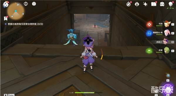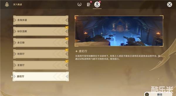 进入阿如村,与索赫尔对话。跟随指引(背包中的赤色石板,开启指引),前往渡厄厅。