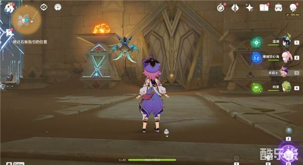 打开石板,前往气息之间。跟随指引,进入权杖厅右手边的密室,这时候就不跟指引了,我们先去找元件。在最北方,是我们的第一个元件。