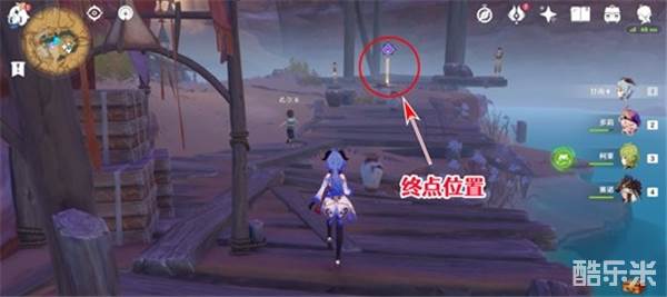 同意他们的请求后,直接就会进入赛跑环节,可以看到希尔米已经跑了出去,远处的黄色光柱就是终点。