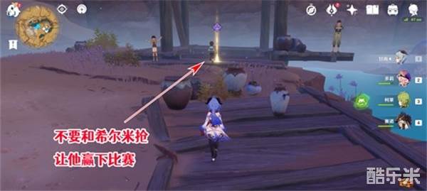 这里就是获得成就的关键,我们不要去和希尔米抢,象征性地跑两步就行了,让希尔米先到达终点,赢下比赛。