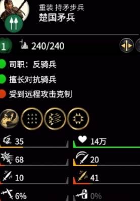 ③矛墙:3秒列阵,+1900%冲锋抗性;+10%近战躲闪;-100%远程格挡。反制冲锋;无法奔跑;