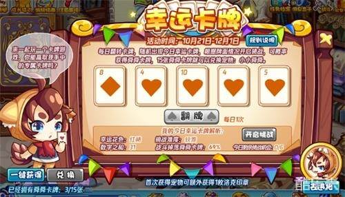 1.每天小洛克们拥有一次翻牌机会,可以获得本日的挑战难度、幸运花色、掉落概率等。