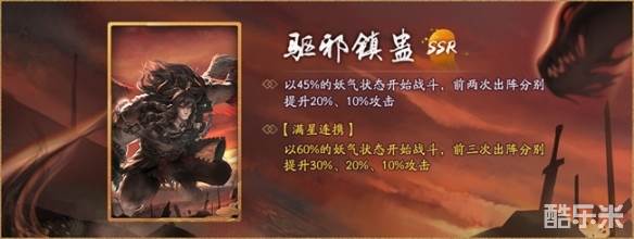 被放逐至边疆的穷奇并没有自暴自弃,而是利用自己强大的力量驱逐妖邪,镇压蛊毒,为四边安宁贡献了力量。全新SSR拓印驱邪镇蛊便描绘了穷奇英勇作战的场景,与SR拓印自缚成囚一同进入邽山困兽限时召唤卡池,且享有召唤概率提升。