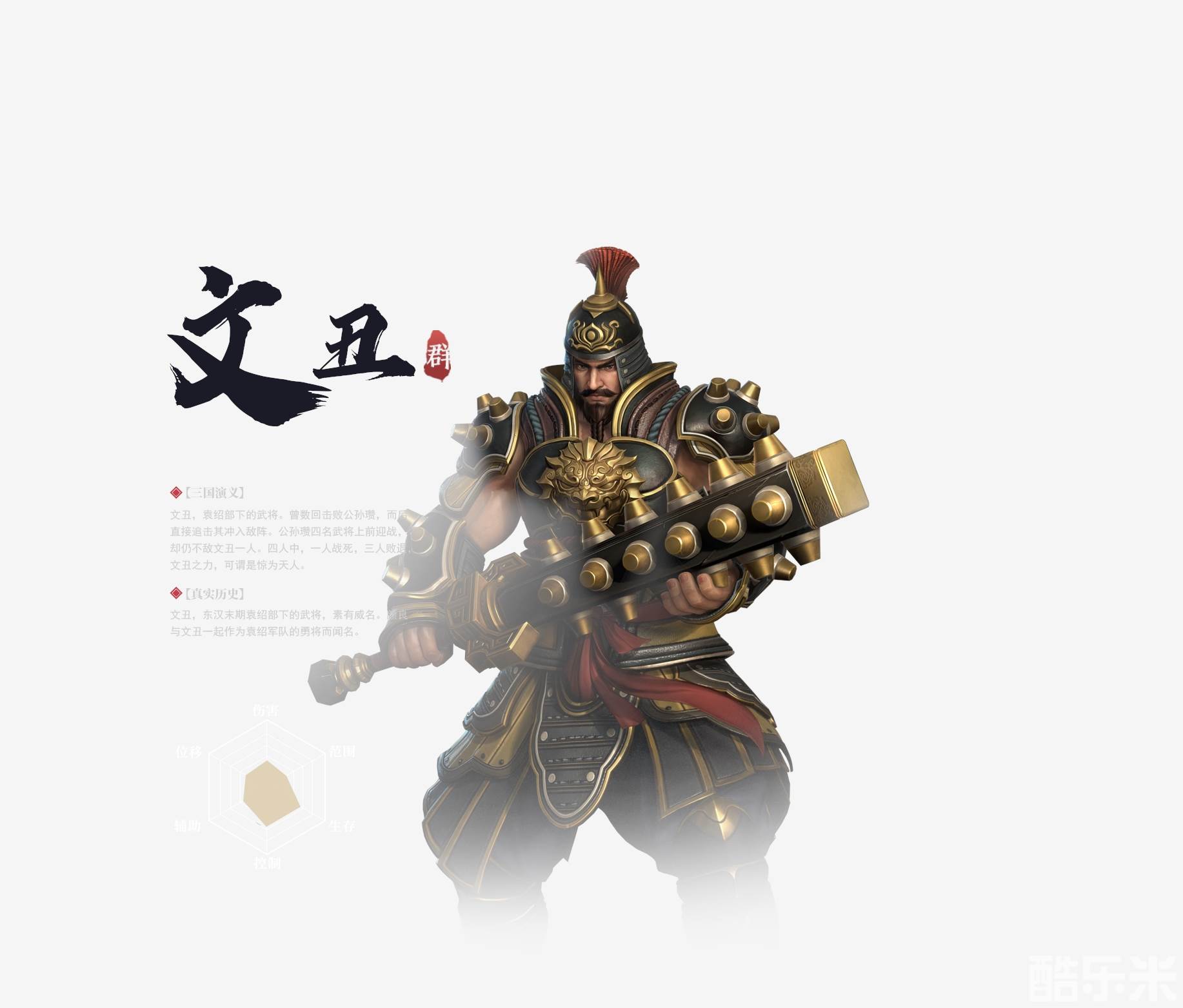 史:文丑,东汉末期袁绍部下的武将,素有威名。颜良与文丑一起作为袁绍军队的勇将而闻名。