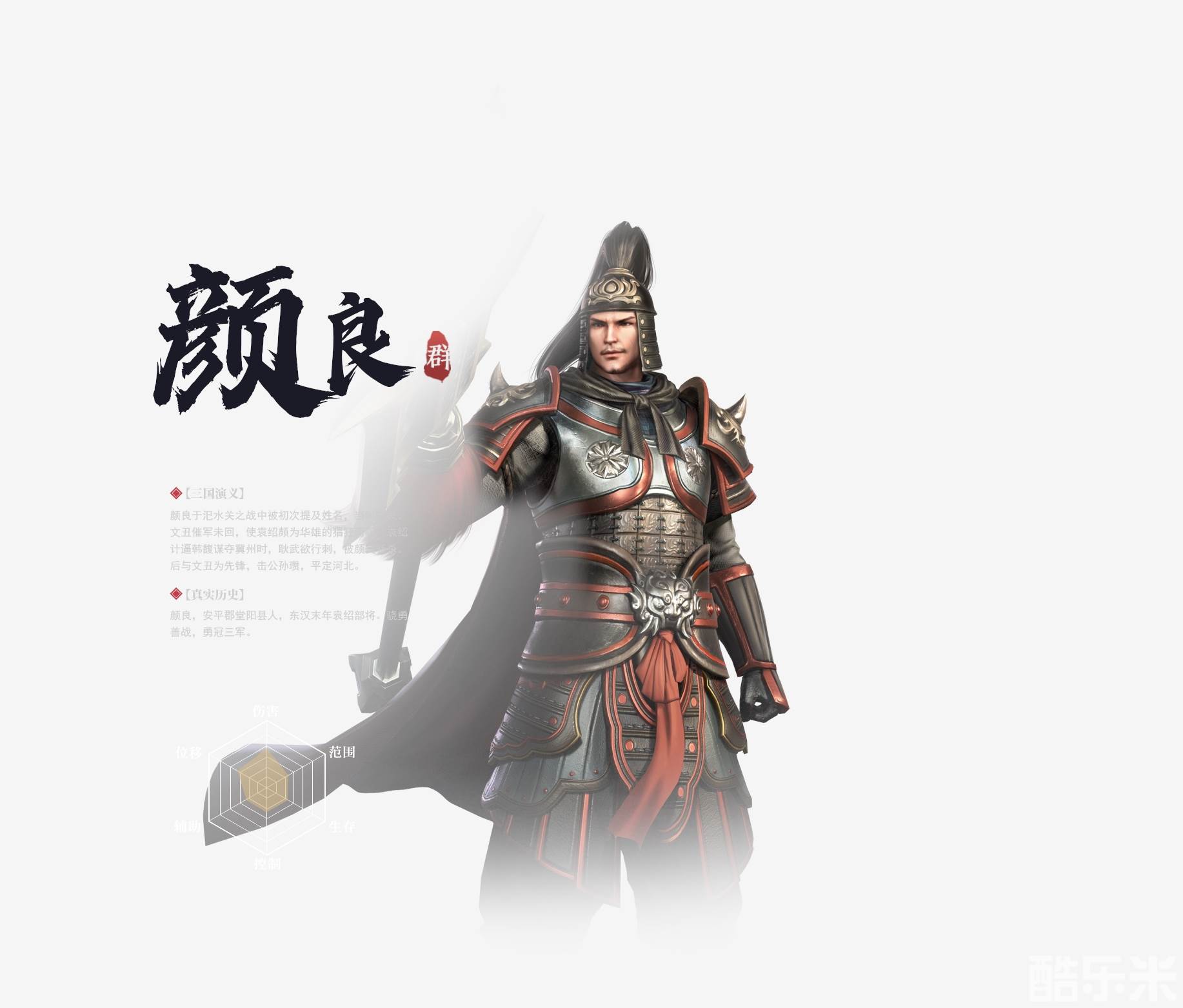 史:颜良,安平郡堂阳县人,东汉末年袁绍部将。晓勇善战,勇冠三军。