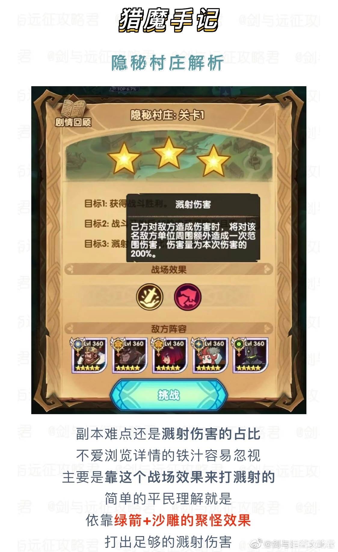 剑与远征隐秘村庄溅射伤害占比如何通关?