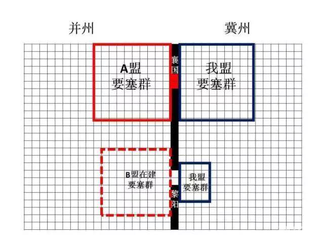 A盟:已经在襄国修筑了大量要塞,并先攻占了关卡,与我盟在关卡形成对峙;