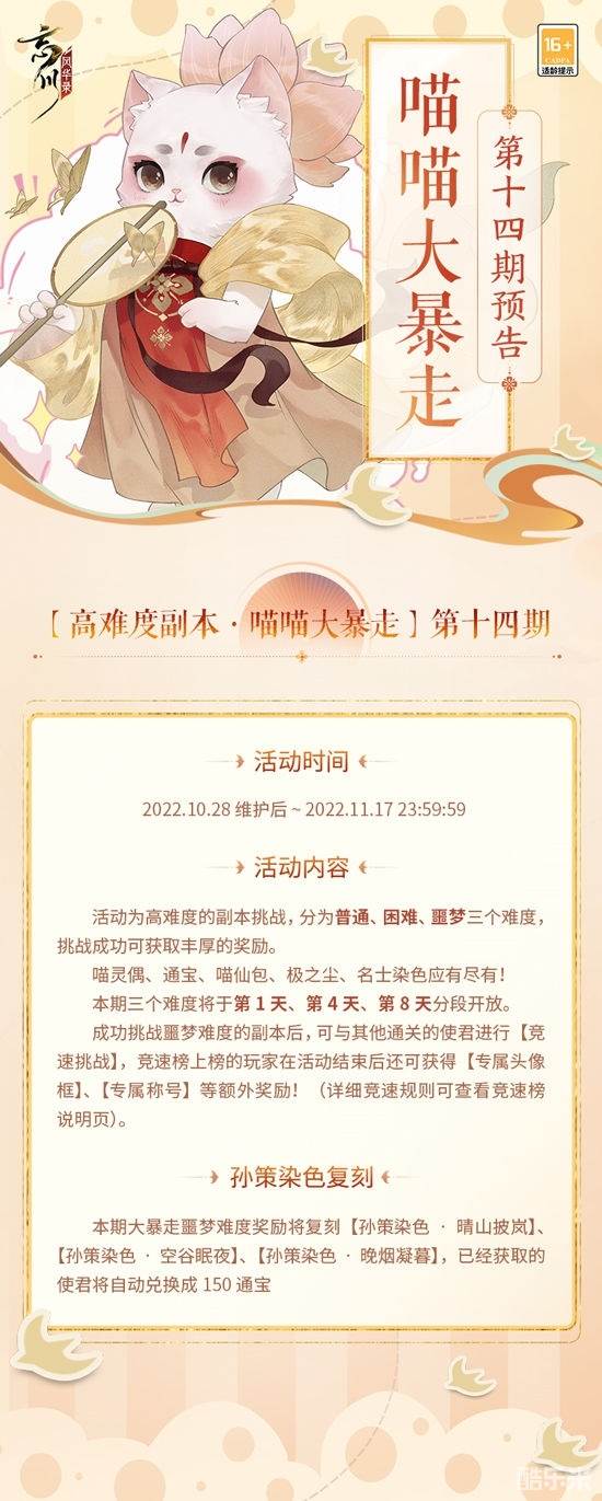 「高难度副本·喵喵大暴走」第十四期将于【2022年10月28日-2022年11月17日】开启!