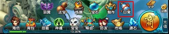 点击主界面左下角的“日常”字按钮,即可打开日常活动面板。