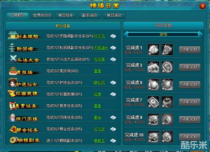 每日任务:日常任务页面列举了玩家每天可做的任务,以及每项任务将为玩家带来的收益。
