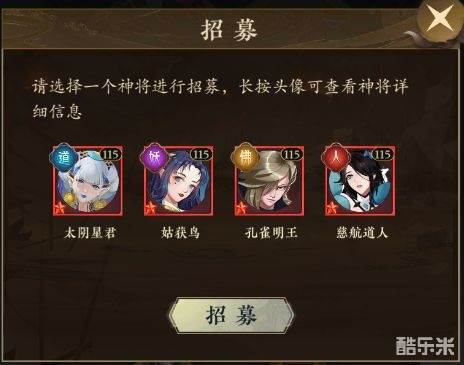 ②关于招募,招募神将等级与自身神将最高等级相同,各位道友可以挑选与自身阵容搭配的神将,优先选择拥有AOE伤害或控制技能的队友。