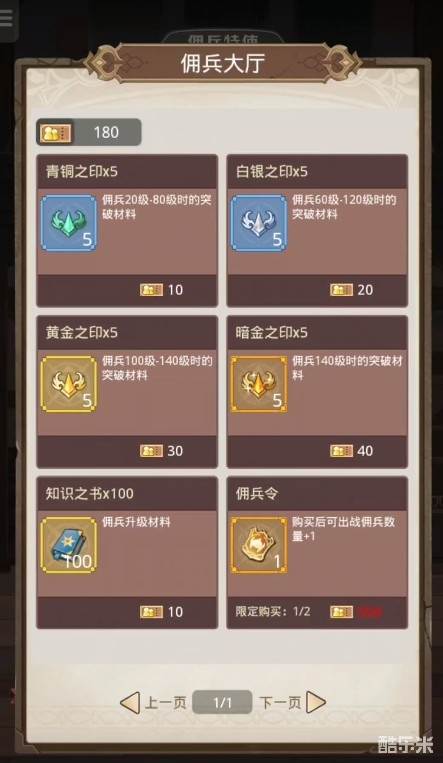 黄金之印,佣兵100-140时的突破材料
