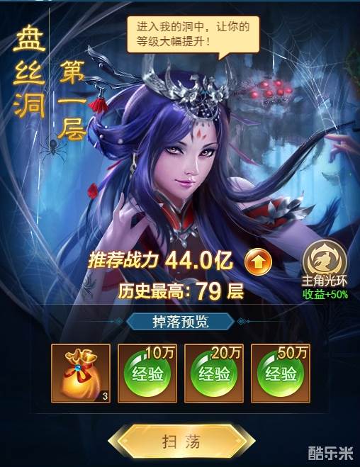 幻境-盘丝洞是能获得大量经验的副本,每成功挑战一层会计算一次经验奖励,层数越高经验越多。
