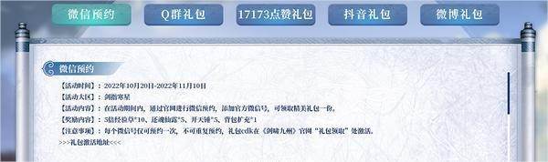 10月20日起进入《剑啸九州》官网即可进行手机预约获得预约礼包码(其中包含永久潇洒紫金葫芦坐骑),同时可以添加官方企业微信获得微信预约礼包码一个哦~