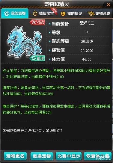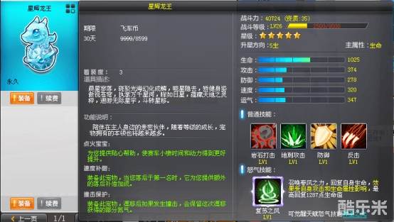 星辉龙王主属性为35资质的生命宠物,在升星方向上可以采用 “5生”的策略来进行宠物对战。