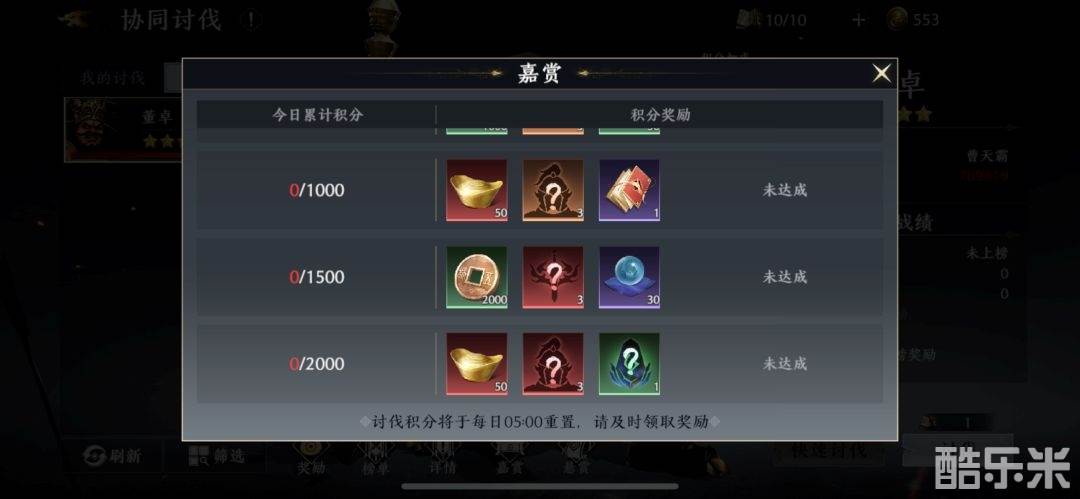 4、累计讨伐积分,可以领取每日的讨伐嘉赏奖励。